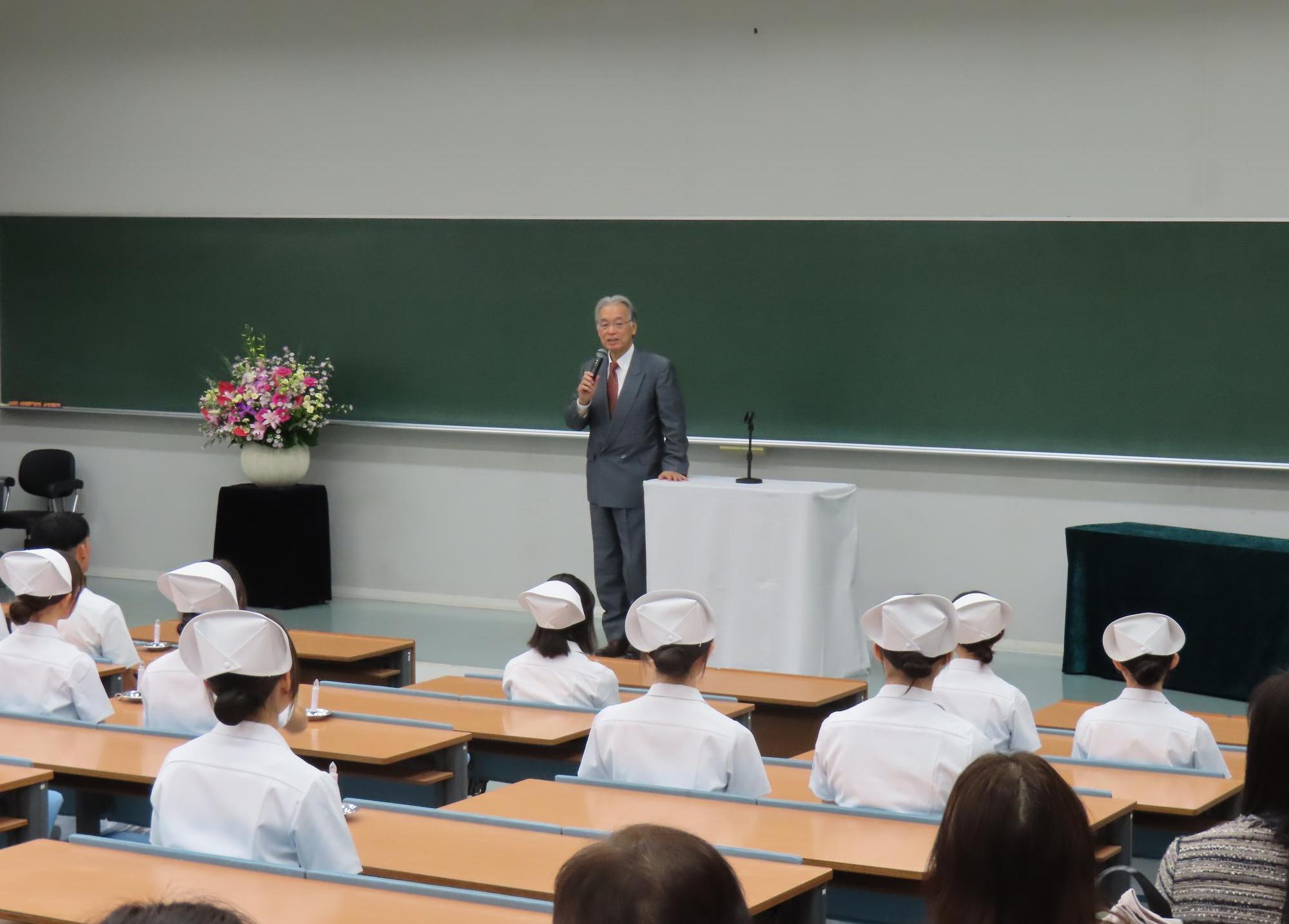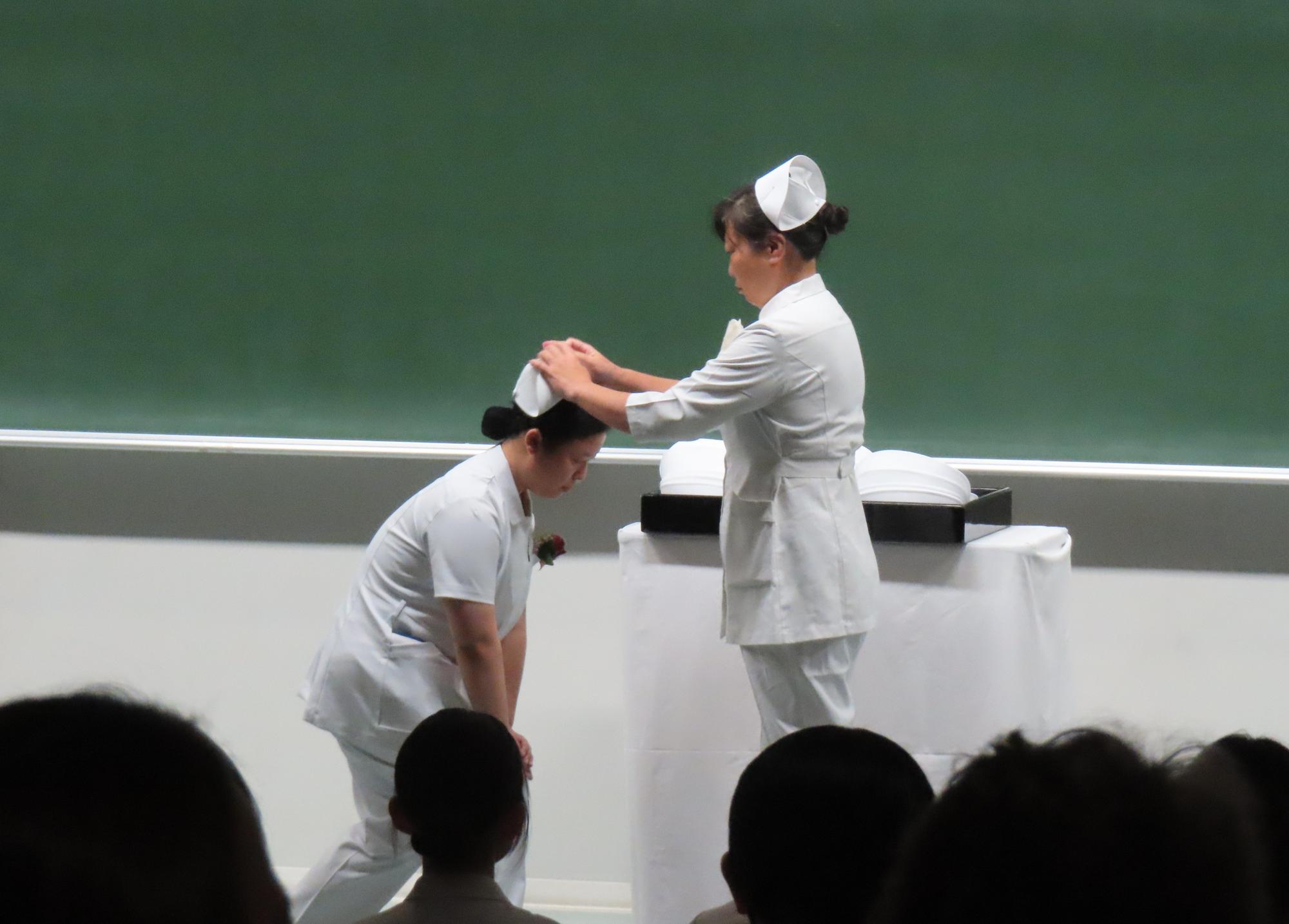 本学の戴帽式は、看護師という医療専門職を志す学生が、その貴さと責任の重さを自覚するための大切な儀式です。