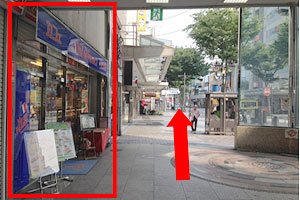 ⑥左側にタリーズ、正面にミカサショッピングプラザ(アーケード)の入口が見えますので、そのまままっすぐ進みます。
