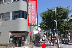 ⑧左側に三菱東京UFJ銀行があるのを確認しながら、道路に突き当たるまでまっすぐ進みます。